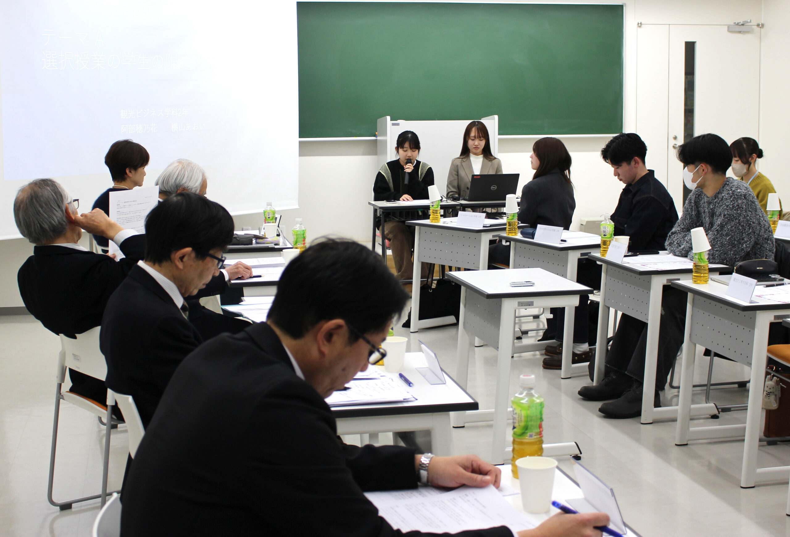 12月11日(木)、2学部5学科から12名の在学生が参加し、同学科、また他学科・学年との連携チームが 7つの提案を学長・副学長らへプレゼンテーションし、それを受けた意見交換を行いました。