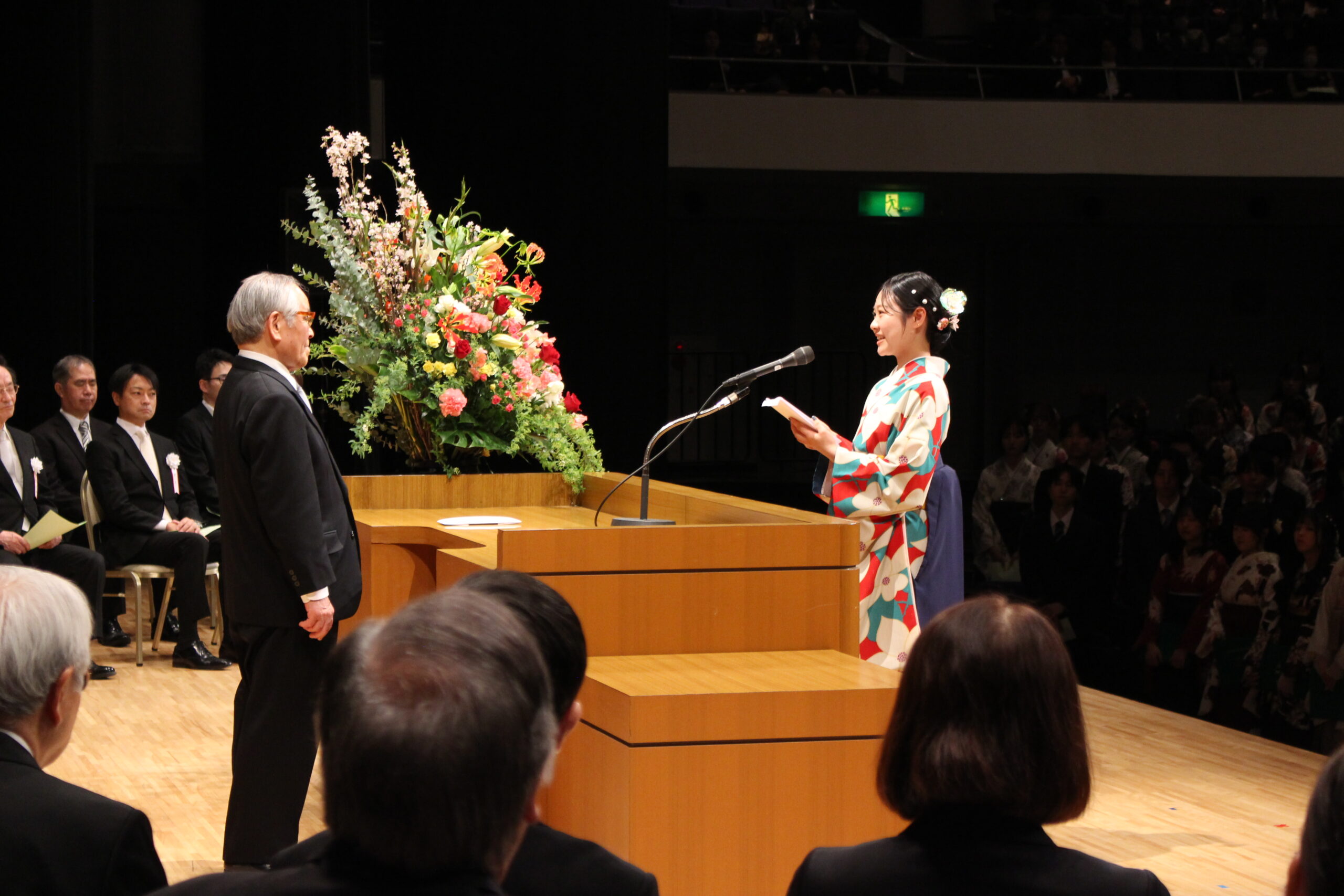 式典では、各学科の代表学生への卒業証書・学位記授与をはじめ、理事長賞・学長賞などの表彰が行われました。