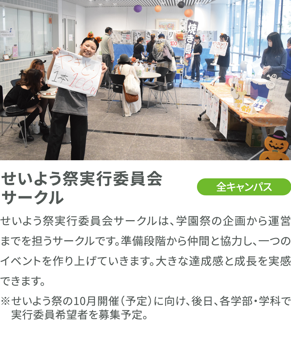 また、サークルを設立したい場合は、各キャンパスの学生総合支援センターまでお気軽にお問い合わせください。