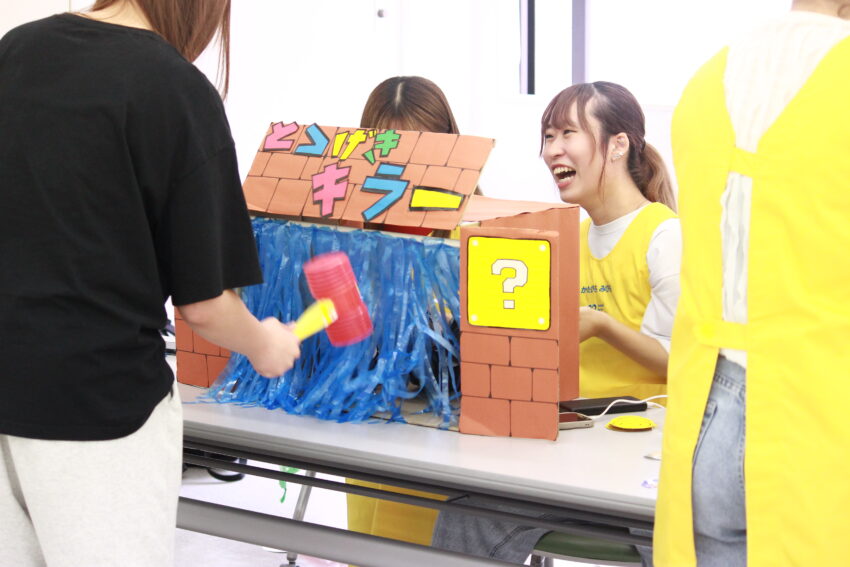 オープンキャンパスでは学生たちが制作した遊びのコーナーで実際に遊ぶことができます。
