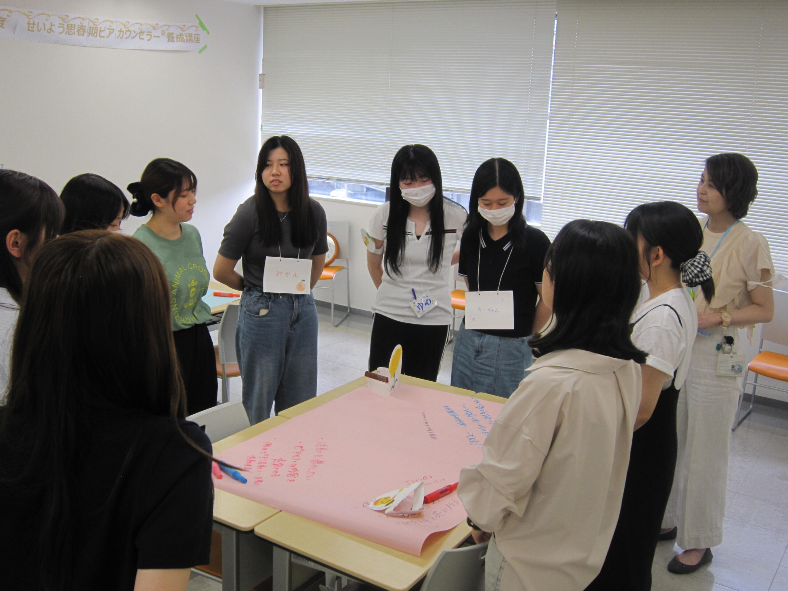 本学看護学科では「ピア(peer)=仲間」を合言葉に、日本ピアカウンセリング・ピアエデュケーション研究会による研修を受けた学生(ピアっ子)たちが、仙台市内やキャンパス内の小学生・大学生を対象に活動しています。思春期ピアカウンセリングは、同世代同士の共感と信頼をもとに、相互理解や自己決定を育む活動です。