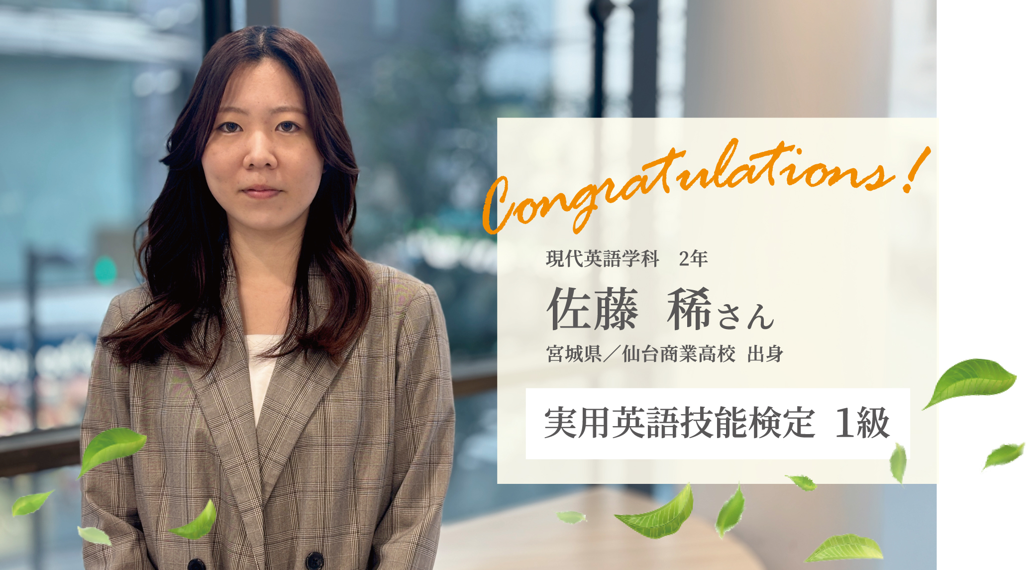 このたび、仙台青葉学院短期大学 現代英語学科の学生が「実用英語技能検定(英検)1級」に合格いたしました。
