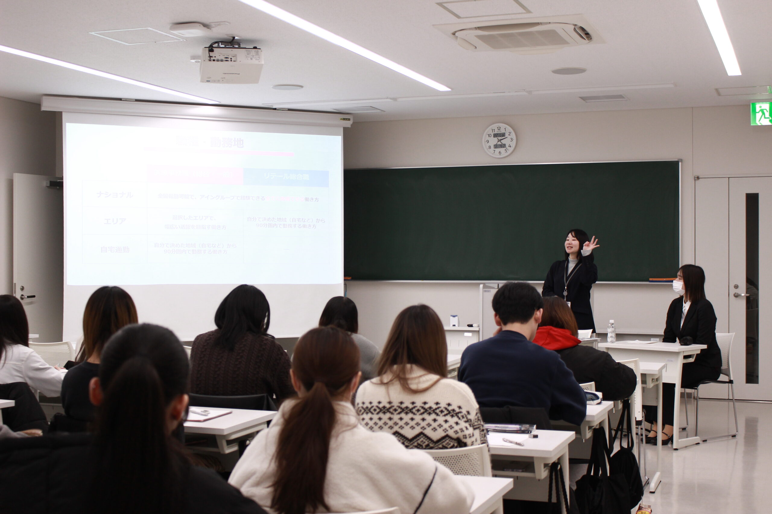 今回は対面およびオンライン形式で、23の団体・企業のご担当者様および本学卒業生の皆様にご参加いただきました。各企業の概要や業務内容、組織風土などの魅力に加え、求める人物像や研修制度などについてもお話しいただき、入社後の働き方やキャリアアップを具体的にイメージできる機会となりました。