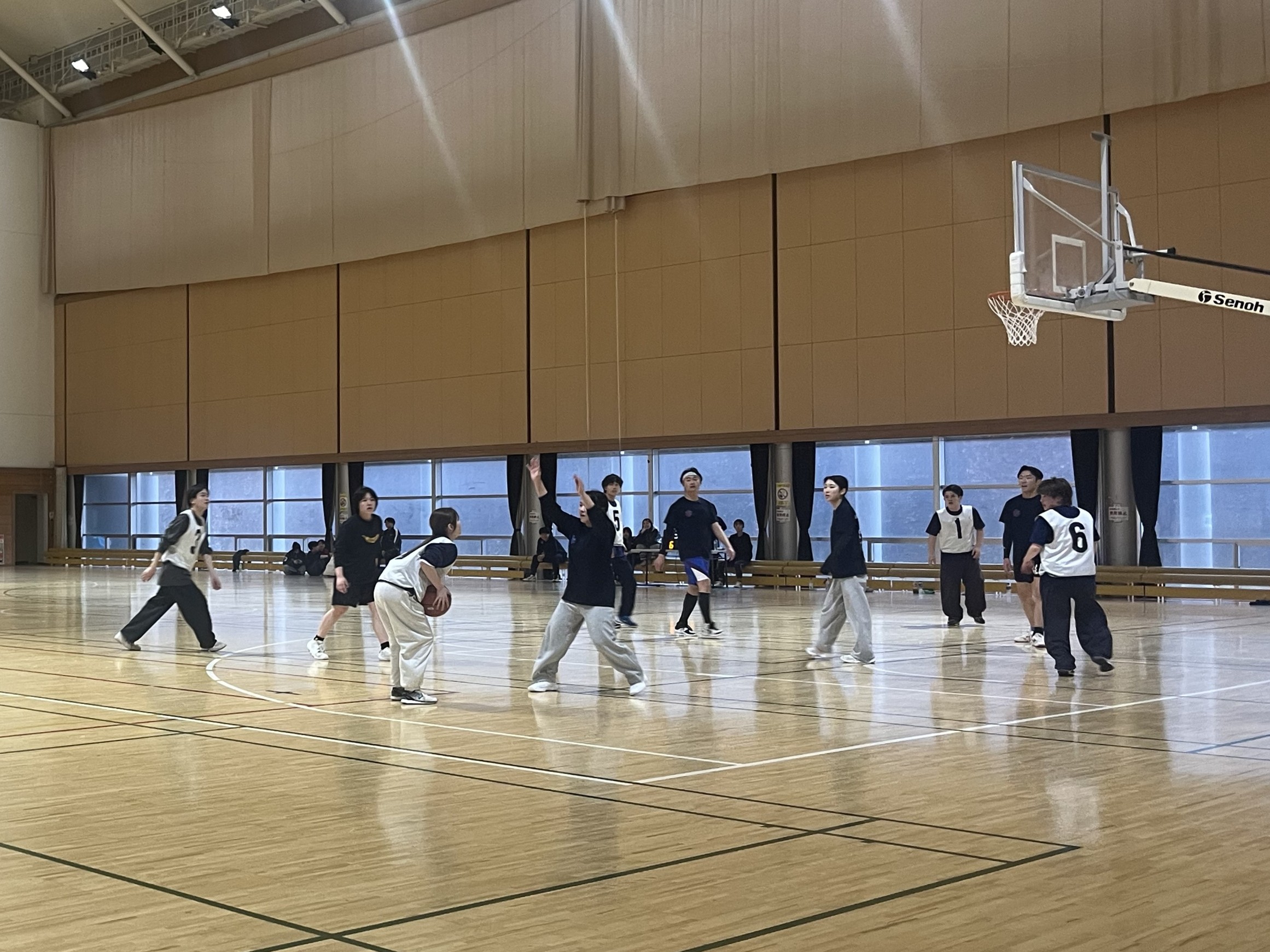 当日は、バレーボールやバスケットボール、ビンゴ大会などが行われ、学科や学年の枠を越えた交流の場となりました。普段はそれぞれの専門分野で学ぶ学生たちが集まり、会場には開始前から明るい雰囲気が広がっていました。
