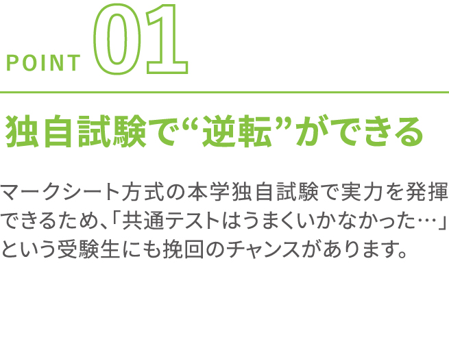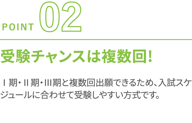 得意分野を最大限に活かし、合格をしっかりと狙える受験方式を選べます。同時出願で受験すれば、可能性はさらにUP!チャンスを広げて、自信を持って挑戦できます。